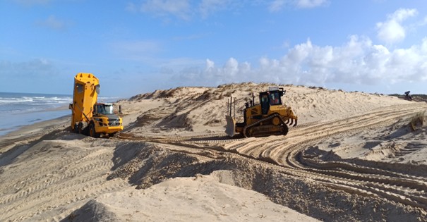 En parallèle de ces travaux de relocalisation du poste de secours, des travaux de reprofilage et de stabilisation dunaire des dunes communales et de la dune domaniale Sud ont été engagés à partir 2024 et se prolongeront en 2026.