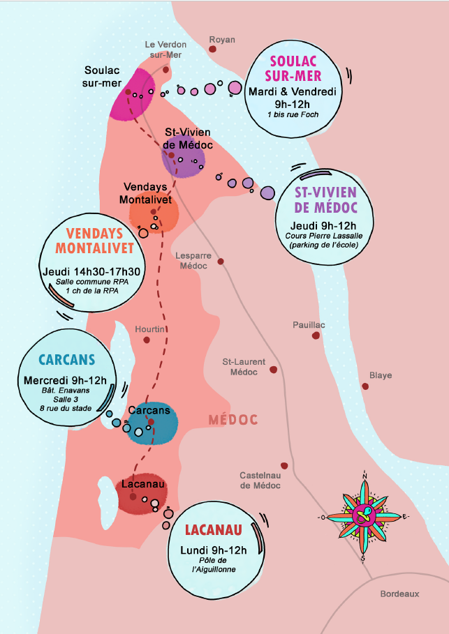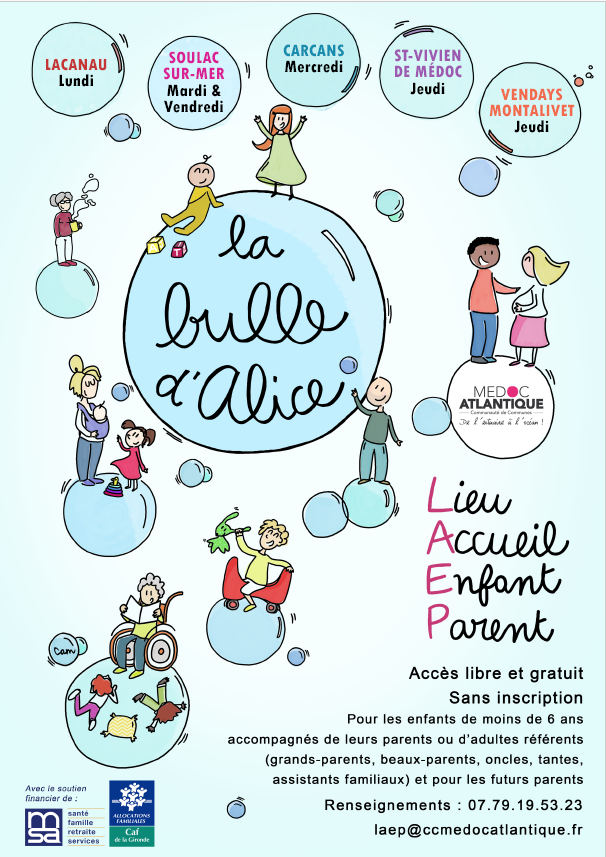Le LAEP est un service itinérant et gratuit géré par la communauté de communes Médoc Atlantique qui s'appelle maintenant : "LA BULLE D'ALICE"